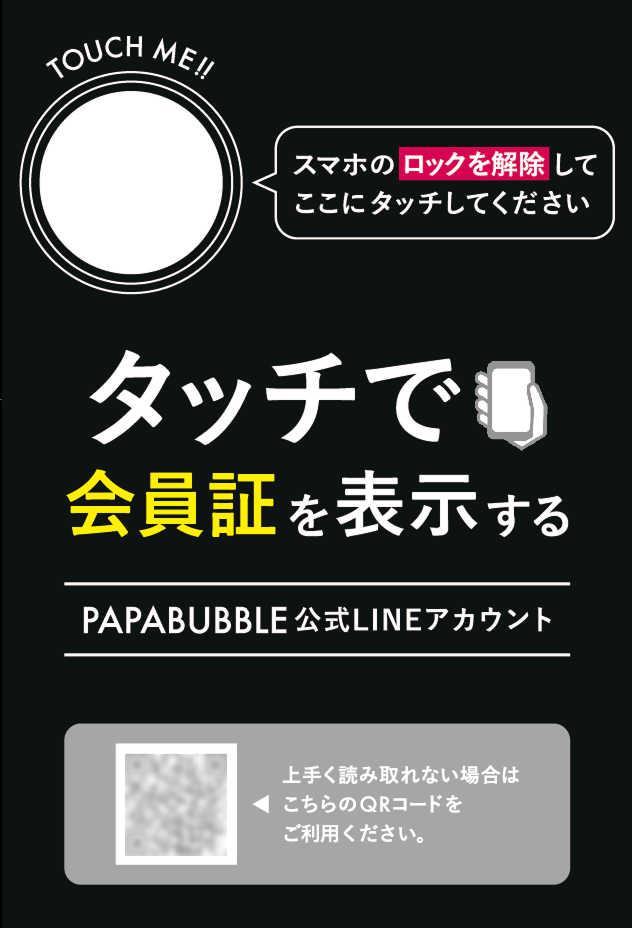 PAPABUBBLEの商品特性として、店舗を中心に購入されるお客さまが多いため、会員登録などの特典は、店舗で受け取れるようにしています。